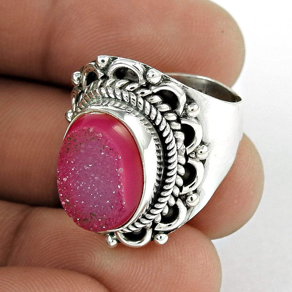 925อัญมณีดรูซี่สีชมพูแหวนรูปไข่เงินสเตอร์ลิงสำหรับเป็นของขวัญเครื่องประดับแฮนด์เมดขายส่งราคาโรงงานผู้ผลิตจำนวนมากอินเดีย