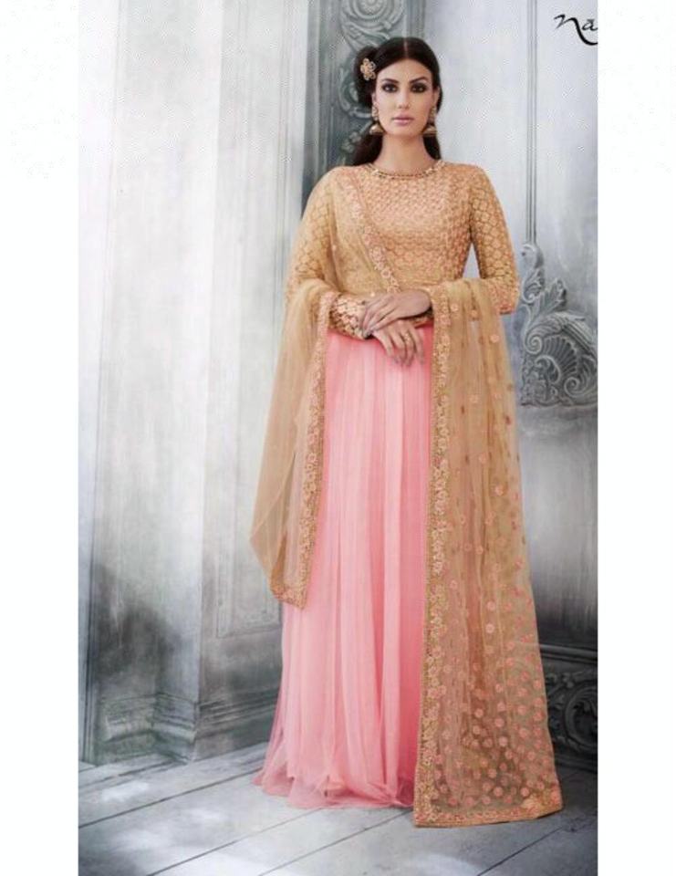 ชุดอนาร์กาลีผ้าตาข่ายปักลายสีชมพู