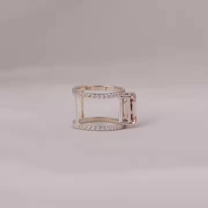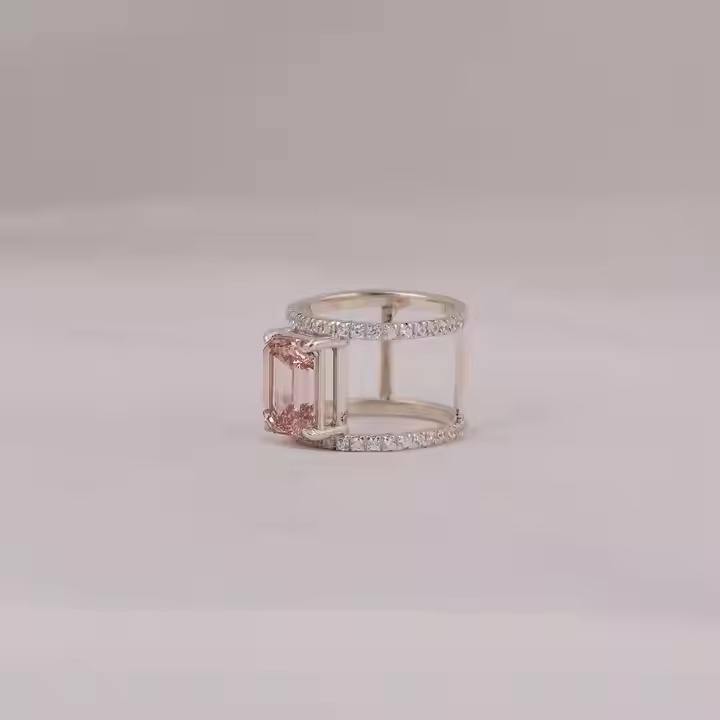 แหวนเพชรที่โตขึ้นรูปมรกตสีชมพูแหวนทองแข็ง14KT ดีไซน์เป็นเอกลักษณ์