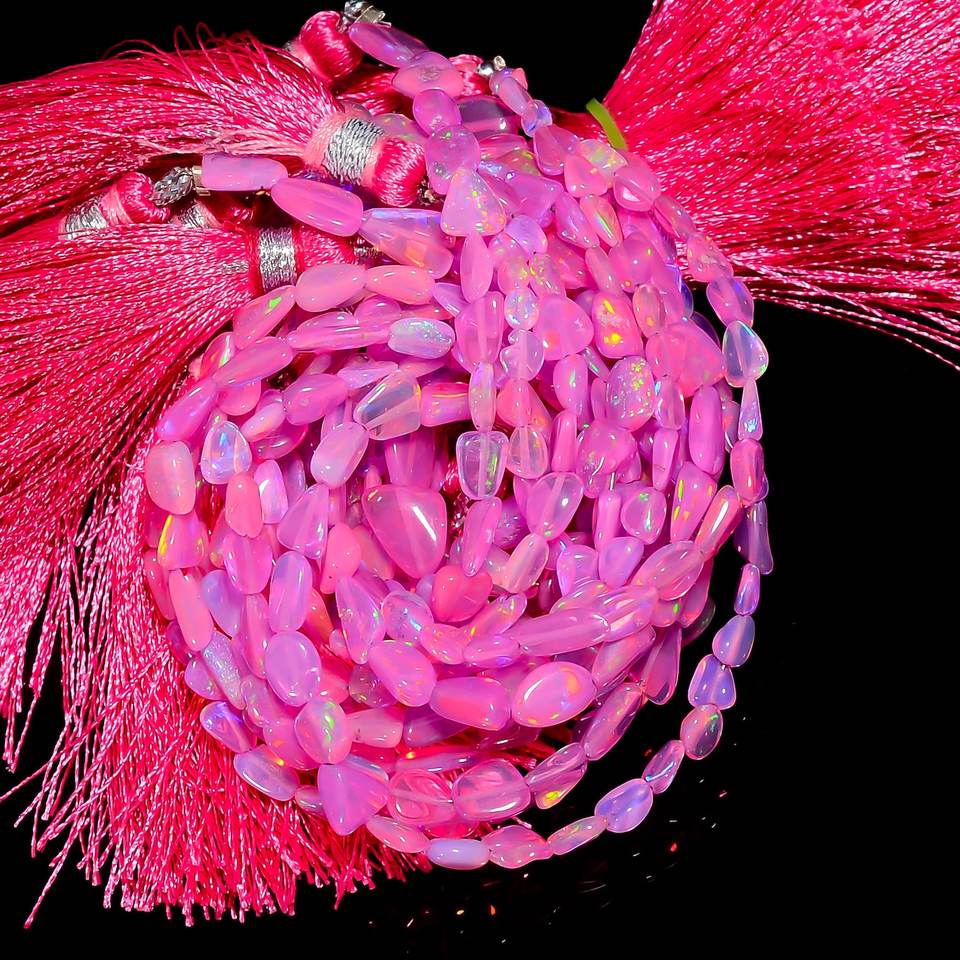 ชื่อผลิตภัณฑ์:ลูกปัดนักเก็ตผิวเรียบโอปอลเอธิโอเปียสีชมพู