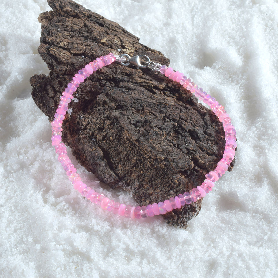 สร้อยข้อมือโอปอลเอธิโอเปียสีชมพู - ลูกปัดโรสควอตซ์ขนาดเล็ก - เครื่องประดับคริสตัลทำมือ - สร้อยคอแบบโชคเกอร์สำหรับผู้หญิง - ของขวัญ - สร้อยข้อมือหินบำบัด