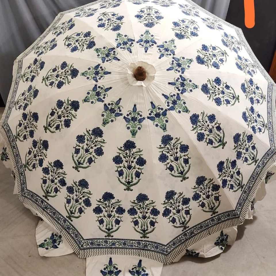 ร่มผ้าฝ้ายลายดอกไม้สีชมพู พิมพ์ลายด้วยมือ ร่มกันแดดทรงกลมสำหรับสวน ร่มกันแดดสำหรับลานบ้าน ร่มอินเดียโครงโลหะสีดำ