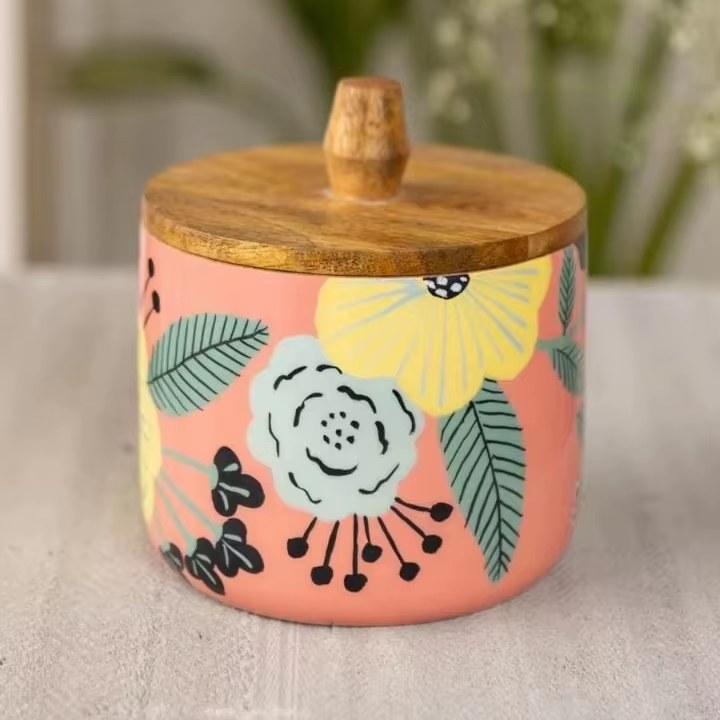 โถเก็บอาหารลายดอกไม้สีชมพูพร้อมฝาปิดภาชนะเก็บเครื่องปรุงรสอาหารในครัวทันสมัยพิมพ์ลายดอกไม้