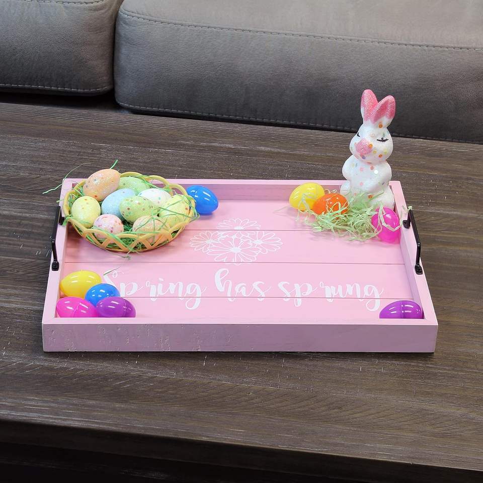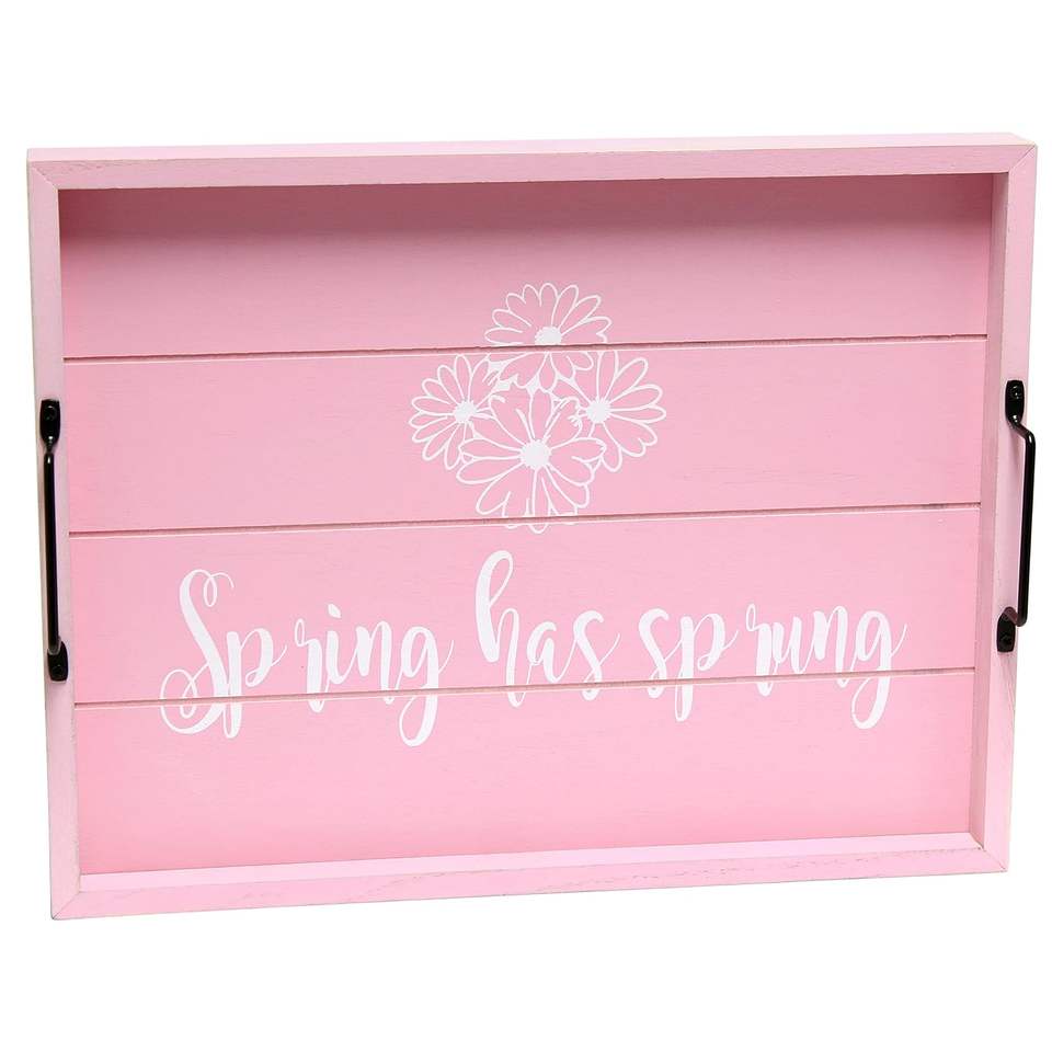 ถาดเสิร์ฟไม้ตกแต่งลายดอกไม้สีชมพูพร้อมหูจับสีดำ รูปทรงสี่เหลี่ยมผืนผ้า ราคาถูกที่สุด