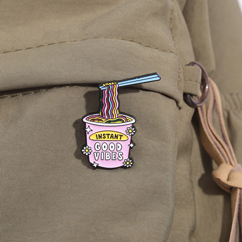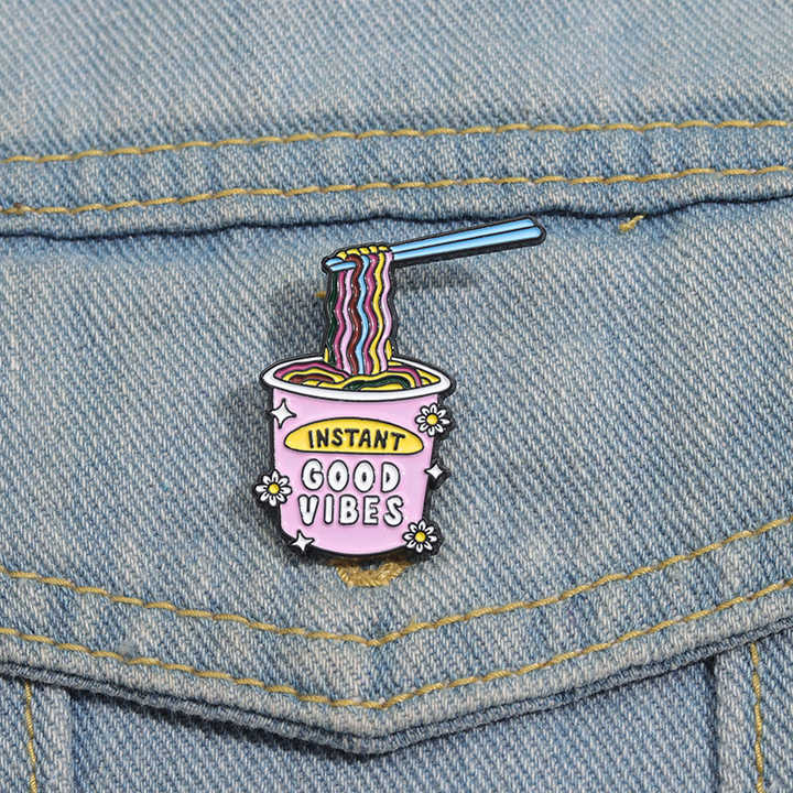 สีชมพูอาหารเส้นบะหมี่กึ่งสำเร็จรูปเข็มกลัดการ์ตูนตลกป้ายปกเครื่องประดับของขวัญสำหรับเด็กกระเป๋ายีนส์ hoodies ขายส่ง
