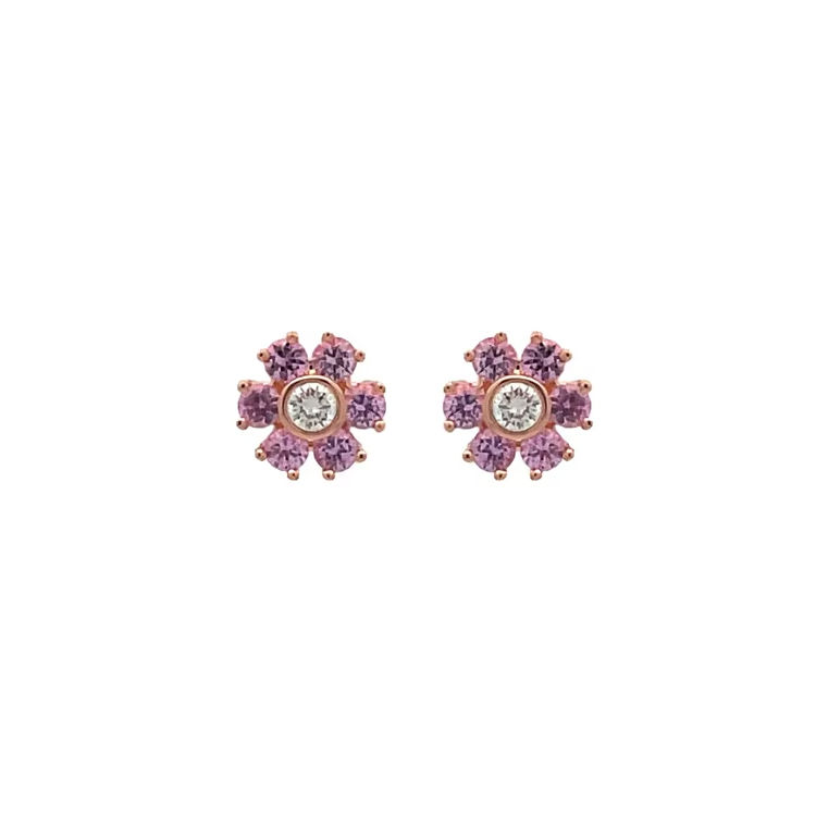 ต่างหูรูปดอกไม้พลอยสีชมพู 18K โรสโกลด์ ประดับเพชรขาว ดีไซน์กลีบดอกไม้ เครื่องประดับหรูหราสำหรับผู้หญิง