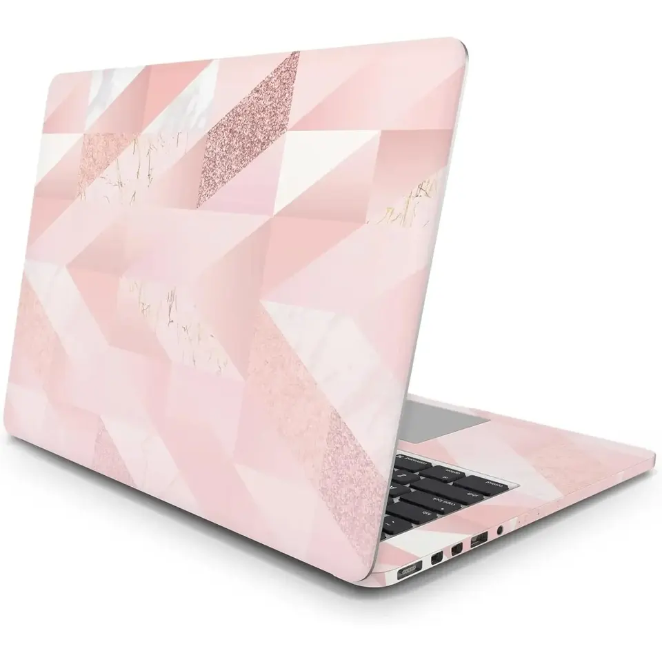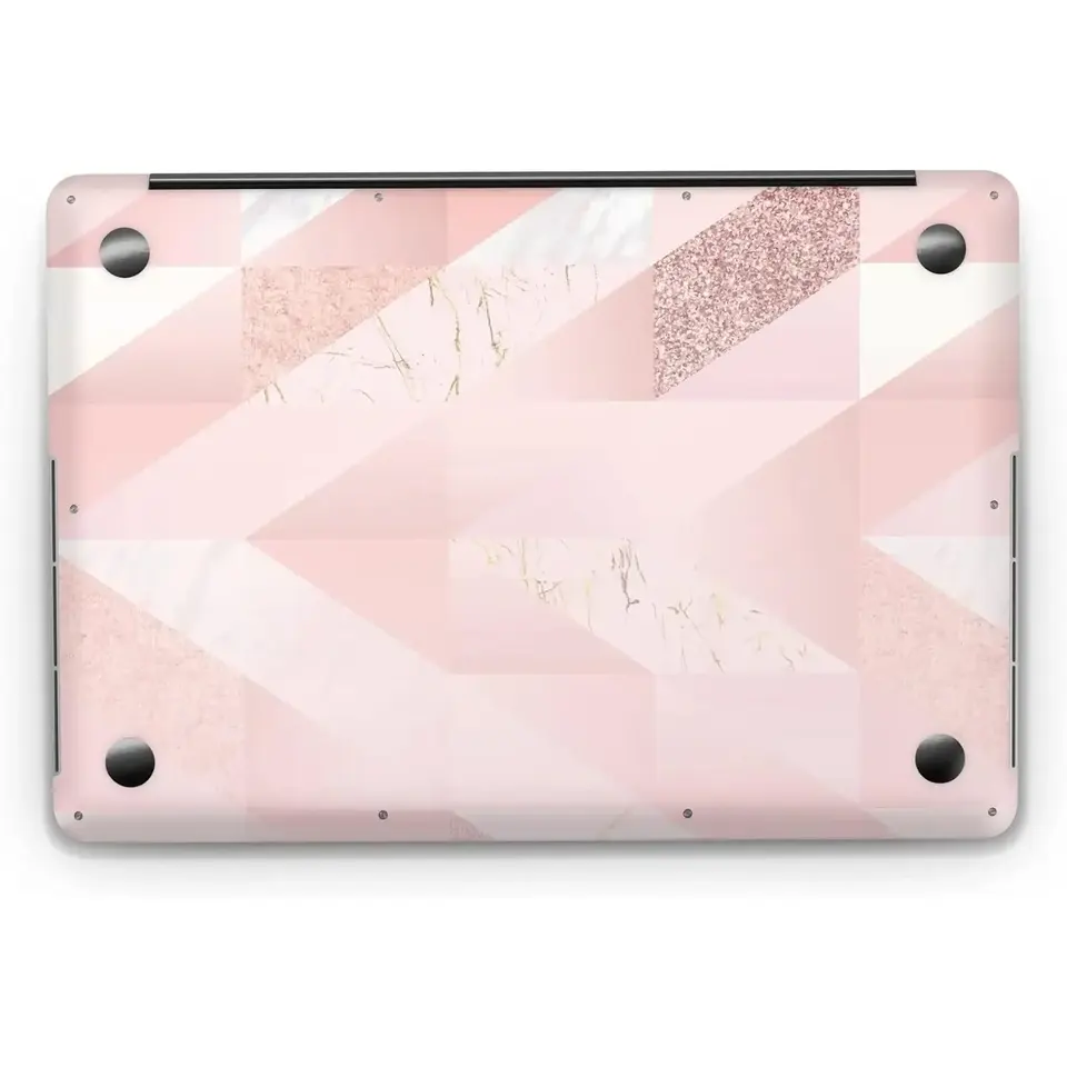 สติกเกอร์แล็ปท็อปสีชมพูลายเรขาคณิตและลายหินอ่อน ดีไซน์ทันสมัยสำหรับ MacBook และพีซี