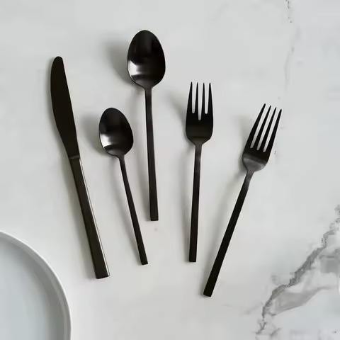 ชุดช้อนส้อมสแตนเลสทรงเรขาคณิตสีชมพู เป็นมิตรกับสิ่งแวดล้อม สำหรับร้านกาแฟ ร้านอาหาร โรงแรม งานเลี้ยงอาหารค่ำในครอบครัว และการจัดโต๊ะอาหาร