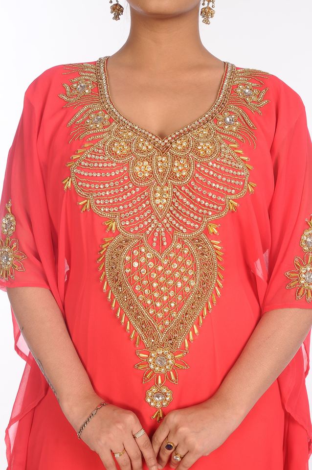 ผ้าคาฟทันแบบอิสลามงานปักผ้าจอร์เจียสีชมพู