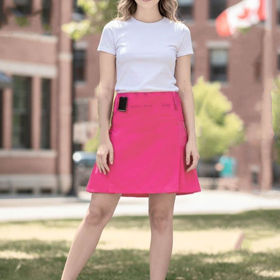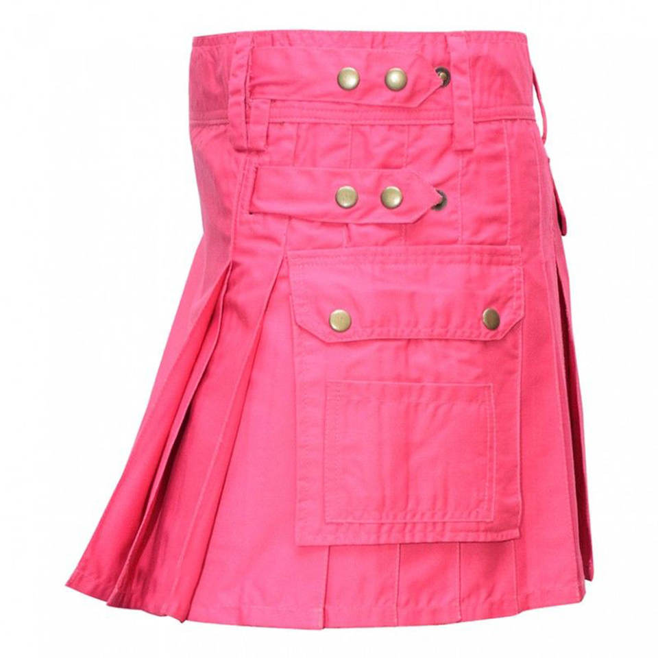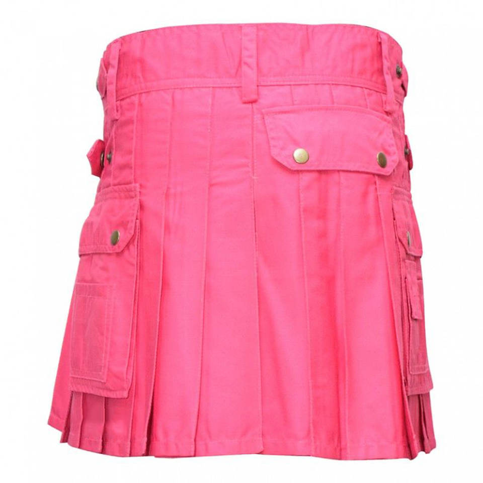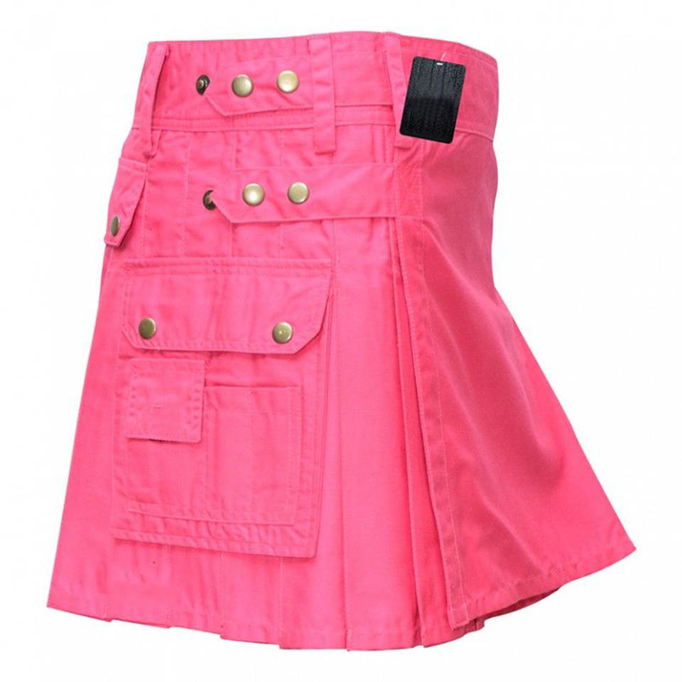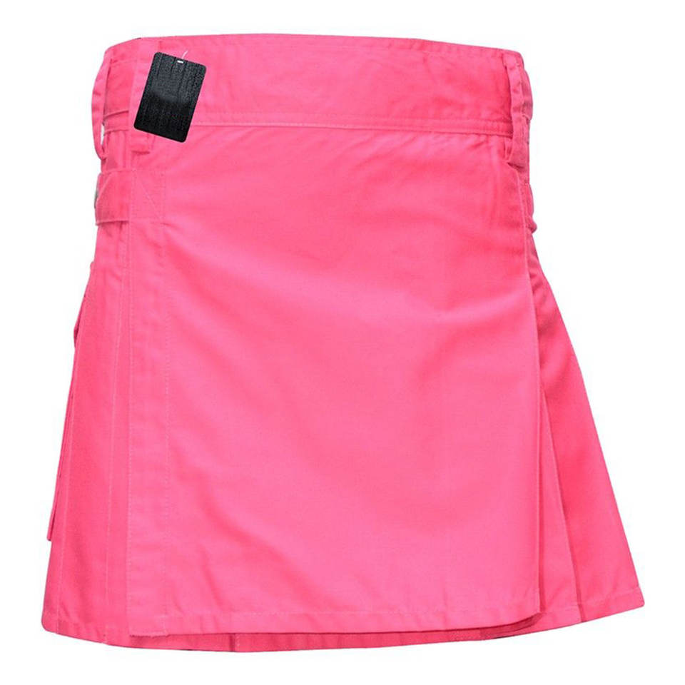 กระโปรงสก็อตสไตล์ปี 2026 สีชมพูสำหรับผู้หญิง แบบมีสายรัดสี่เส้นและกระเป๋าสามช่อง