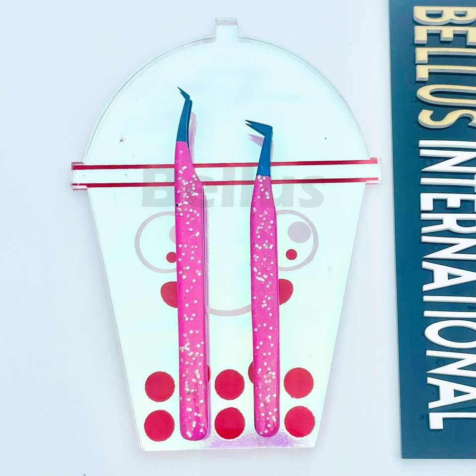 แหนบปลายขนตาปลอมมีกลิตเตอร์สีชมพูมีตัวหนีบขนตาสแตนเลสแบบญี่ปุ่นพร้อมถาดใส่ขนตา OEM