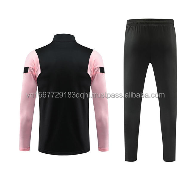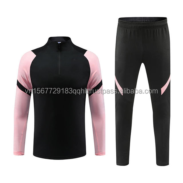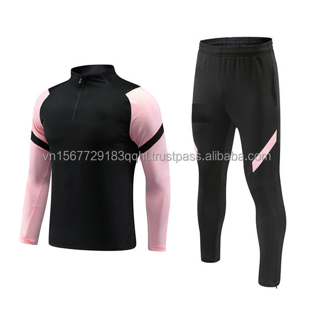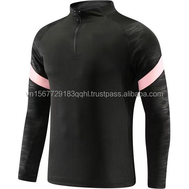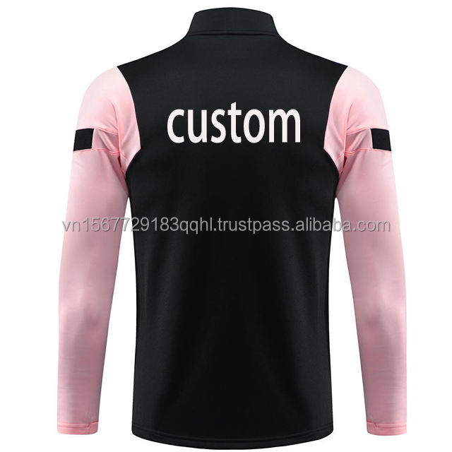 ชุดฝึกซ้อมฟุตบอลแขนยาวสีชมพูแบบซิปครึ่งตัว ปรับแต่งได้สำหรับวัยรุ่น ชุดกีฬาพิมพ์ลายดิจิทัล แห้งเร็ว สวมใส่สบาย