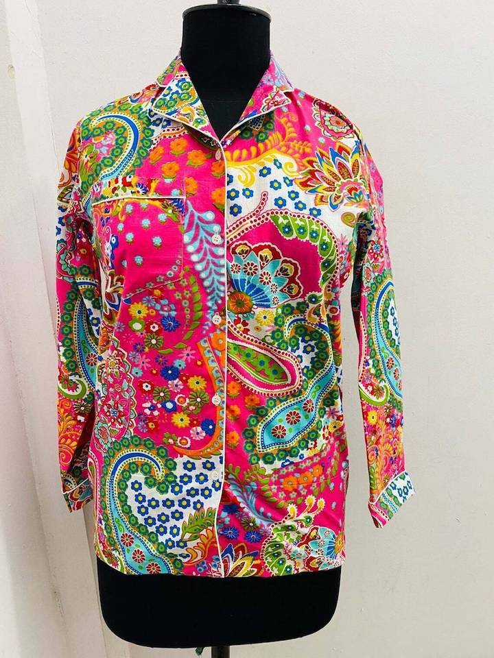 ชุดนอนผ้าฝ้ายคอตตอนพิมพ์ลาย Paisley พิมพ์ลาย Paisley