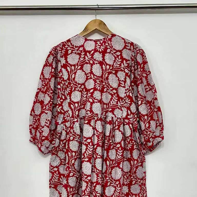 เดรสผ้าฝ้ายพิมพ์ลายดอกไม้สีชมพู: เสื้อคลุมสไตล์โบฮีเมียนแบบมินิ/มิดิ