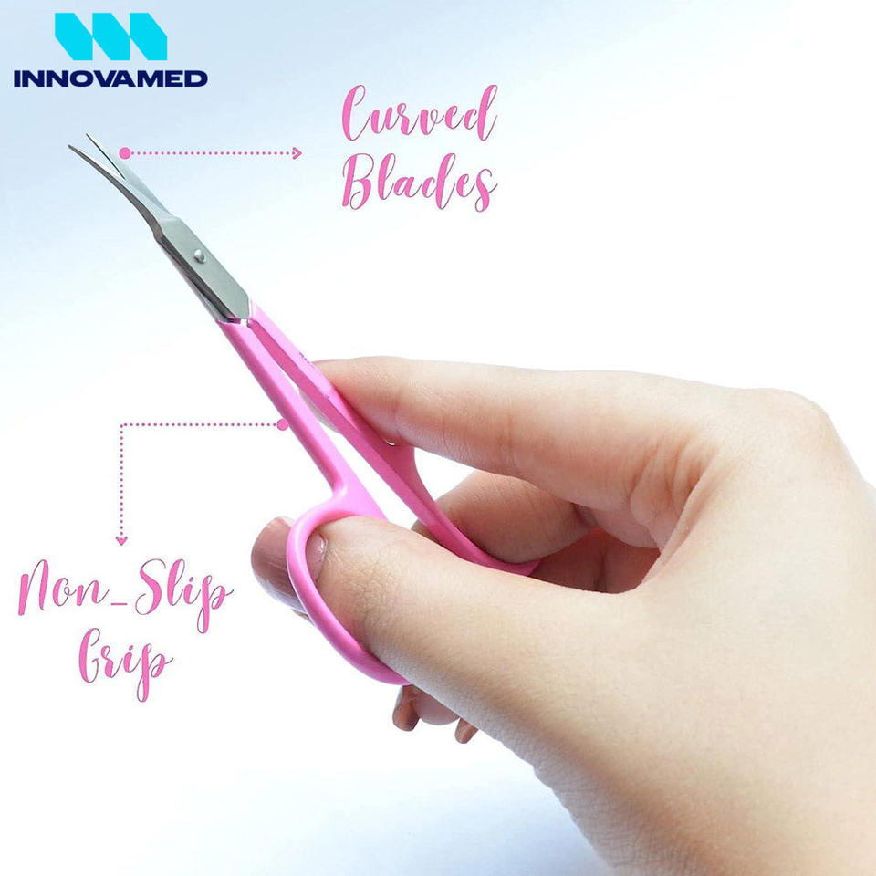 กรรไกรตัดหนังกำพร้าปลายโค้ง ด้ามพลาสติกสีชมพู ผลิตจากสแตนเลส ราคาขายส่ง ผลิตในปากีสถาน สินค้าใหม่จาก INNOVAMED