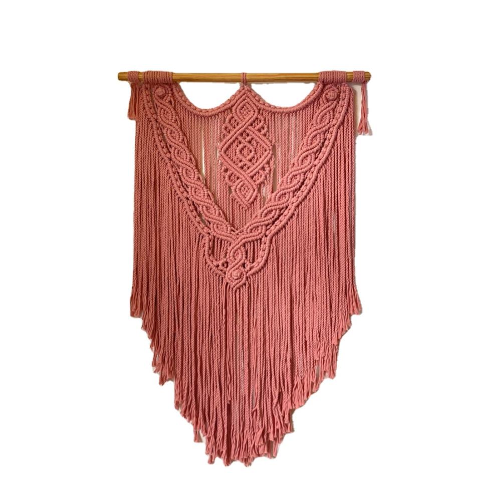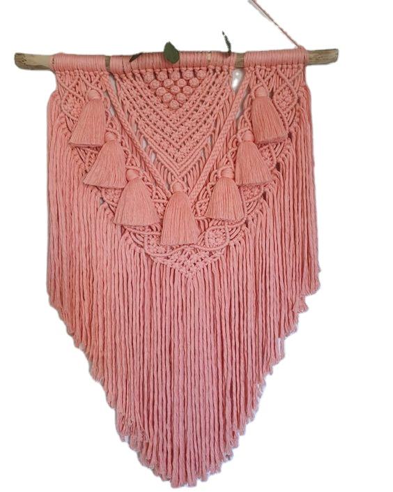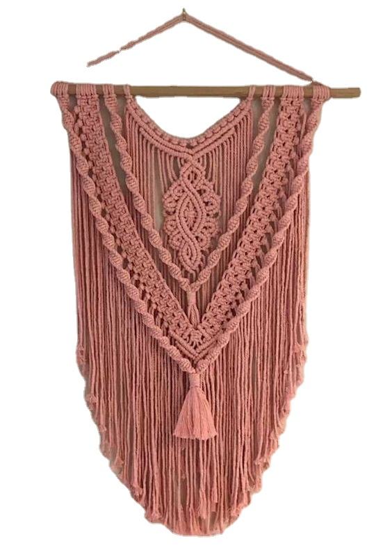 ที่แขวนผนังสไตล์โบฮีเมียนแบบโบฮีเมียนผ้าฝ้ายสีชมพูและสีแดงสำหรับตกแต่งผนังบ้าน