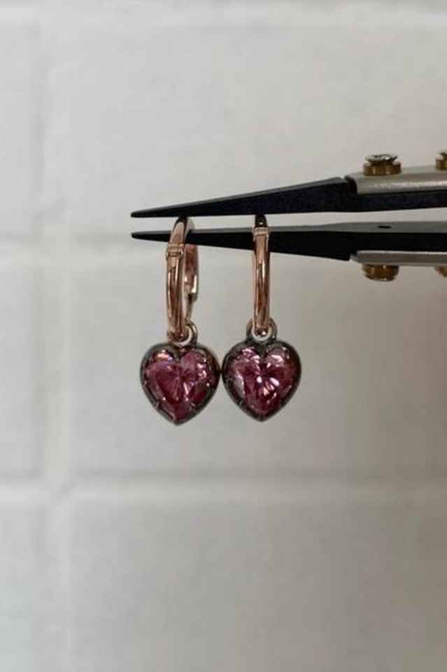 ต่างหูห้อยประดับมอสซาไนต์รูปหัวใจสีชมพู เงินแท้ 925 ชุบทอง 14K แบบห่วงคล้องหู เครื่องประดับหรูหราสำหรับผู้หญิง