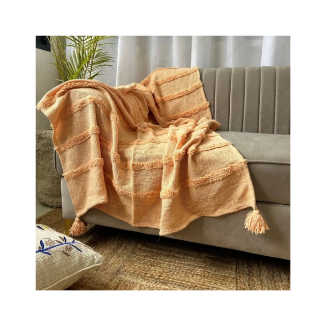 ผ้าห่มโซฟาลายก้างปลาสีชมพู ขนาด 50x60 นิ้ว ผลิตตามหลักการค้าที่เป็นธรรม ได้รับการรับรองจากอินเดีย เหมาะสำหรับผู้ค้าปลีกที่ต้องการของตกแต่งบ้านสไตล์โมเดิร์น อบอุ่น และมินิมอล