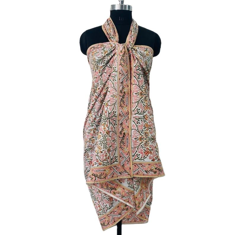 สีชมพูอินเดียดอกไม้มือบล็อกพิมพ์ผ้าฝ้ายนุ่มผ้าซิ่น/Pareo ของขวัญสําหรับแม่เพื่อนเพื่อนเจ้าสาวผู้หญิง