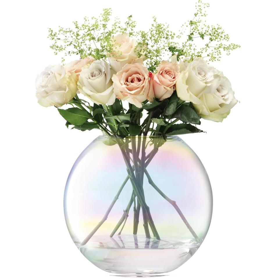 แจกันดอกไม้ทำจากแก้วทรงโถสีชมพูสำหรับตกแต่งในงานแต่งงานและงานเลี้ยงขนาด24x18ซม.