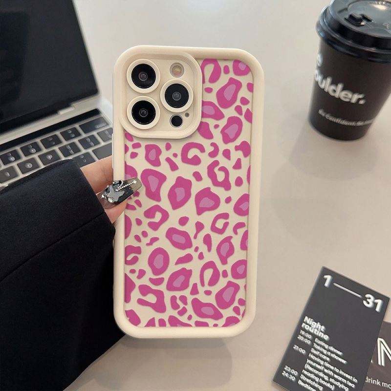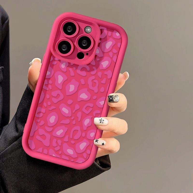 เคสซิลิโคนเหลวลายเสือดาวสีชมพูสำหรับ iPhone 16 Pro Max เคส iPhone 15 14 13 11 12 XS Max X XR 7 8 Plus 16 17 เคสกันกระแทก