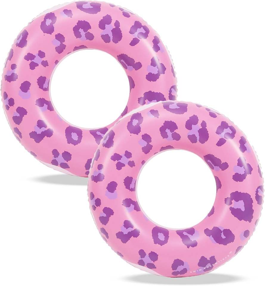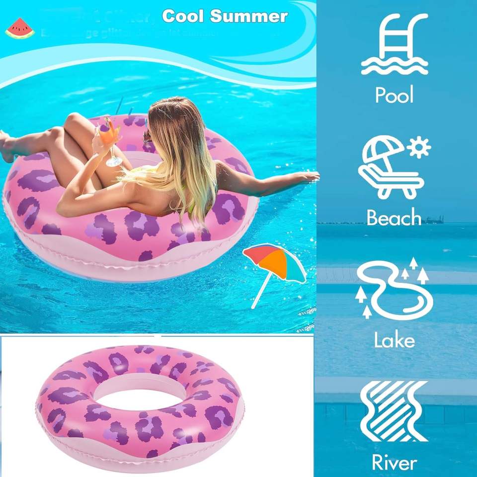 ห่วงยางว่ายน้ำพีวีซีสีชมพูลายเสือดาวสำหรับผู้ใหญ่ สนุกสนานในน้ำ
