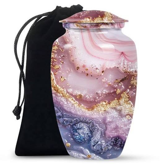 โกศบรรจุอัฐิอะลูมิเนียมลายดอกลิลลี่สีชมพู - สำหรับบรรจุอัฐิมนุษย์ผู้ใหญ่, โกศงานศพทำมือ, ขนาด 10 นิ้ว