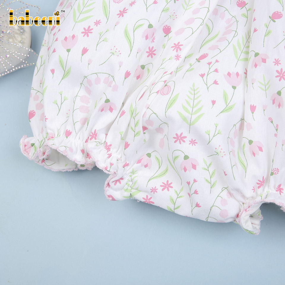ชุดรอมเปอร์เด็กผู้หญิงลายดอกลิลลี่สีชมพูสำหรับฤดูใบไม้ผลิ แบบ OEM ODM ติดกระดุมแป๊ก รุ่น BB3014 ผ้าฝ้ายออร์แกนิค 100% ได้รับมาตรฐาน OEKO-TEX