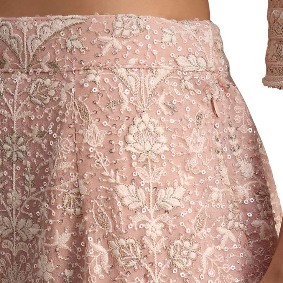 สีชมพู lucknowi kurti Palazzo กับชุดพื้นเมืองสำหรับผู้หญิงเครื่องแต่งกายงานปาร์ตี้จากโรงงาน