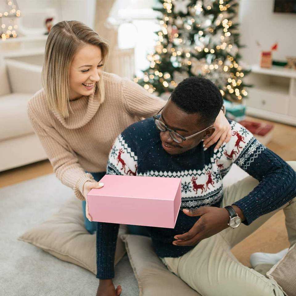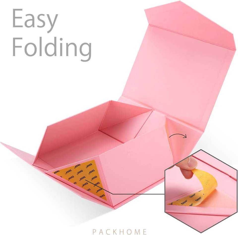 กล่องของขวัญแม่เหล็กสีชมพู ขนาด 10 x 6 x 3 นิ้ว กล่องกระดาษแข็งอย่างดีสำหรับบรรจุของขวัญ บรรจุภัณฑ์สำหรับขายปลีกและขายส่ง