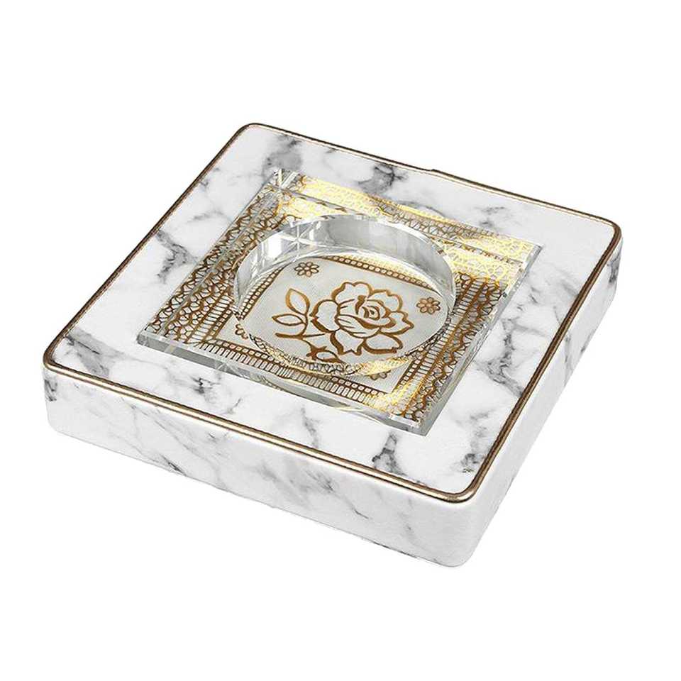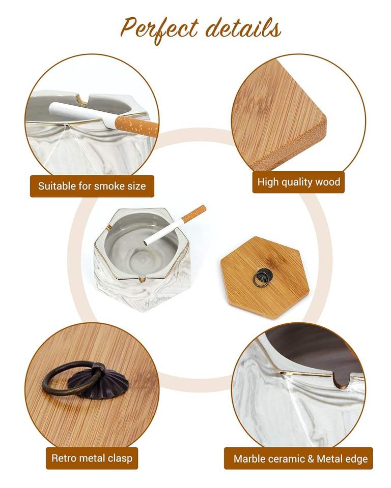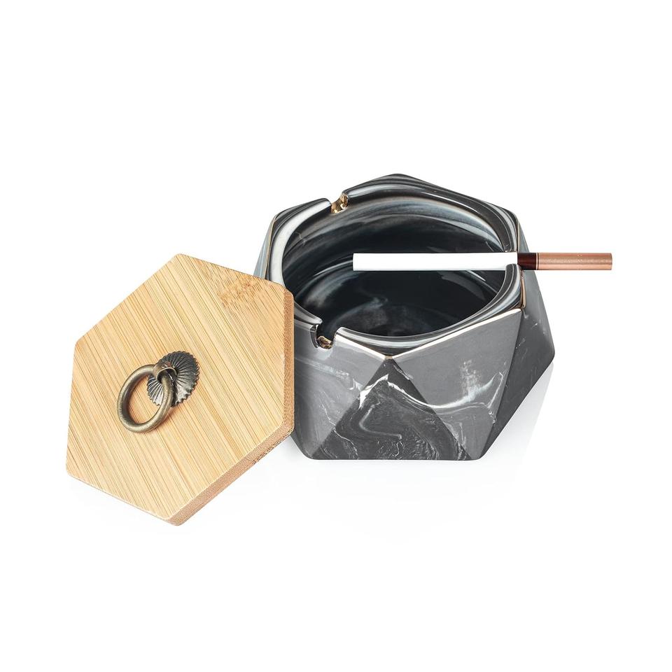 ที่เขี่ยบุหรี่เซรามิกหินอ่อนสีชมพูพร้อมฝาปิด สำหรับใช้ภายนอกและบนโต๊ะทำงาน เหมาะสำหรับตกแต่งบ้านและสำนักงาน