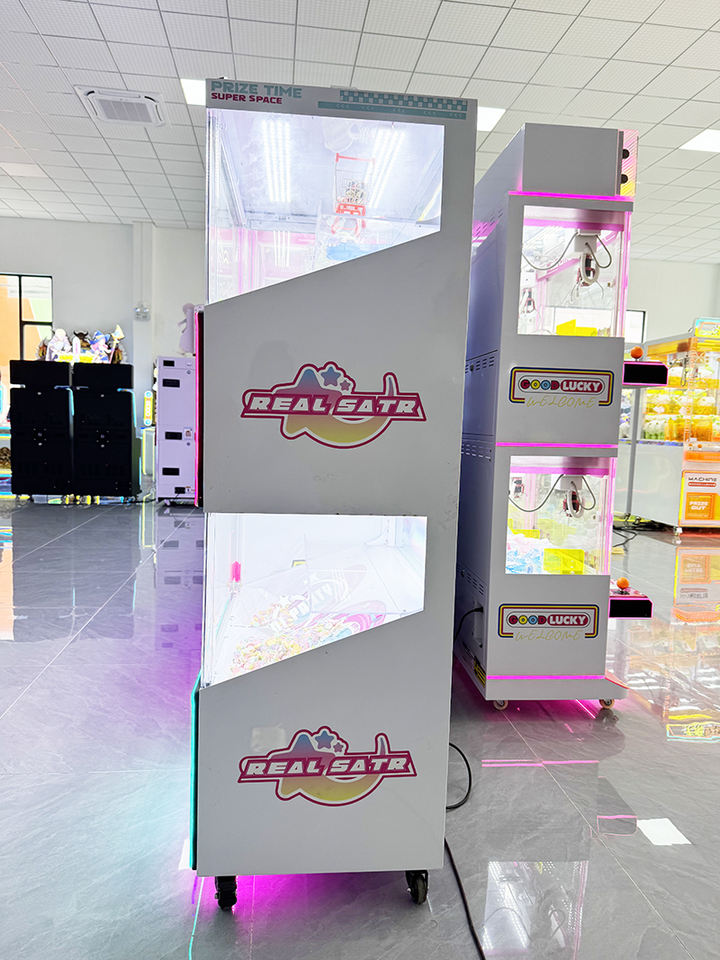 เครื่องเกมมินิสีชมพูสำหรับงานปาร์ตี้4ผู้เล่นรางวัลยูเอฟโอของเล่นหยอดเหรียญคลิปล้อนำโชค