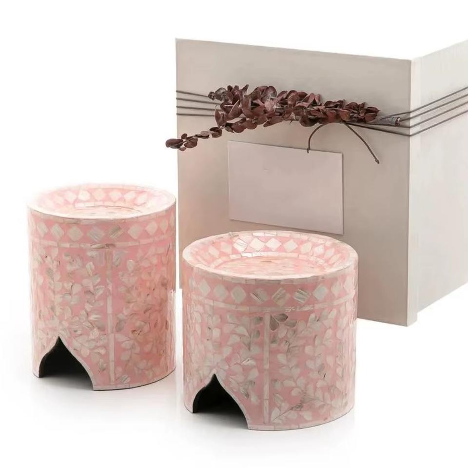 แท่นวางช็อกโกแลตสีชมพูประดับมุกสำหรับจัดวางขนมหวาน ตกแต่งโต๊ะงานเลี้ยงที่บ้าน และตกแต่งสไตล์หวานหรูหราจากอินเดีย