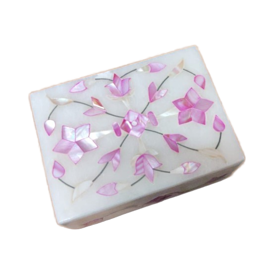กล่องเครื่องประดับมุกสีชมพูสำหรับเป็นของขวัญ กล่องตกแต่งลายหินอ่อนสีขาว