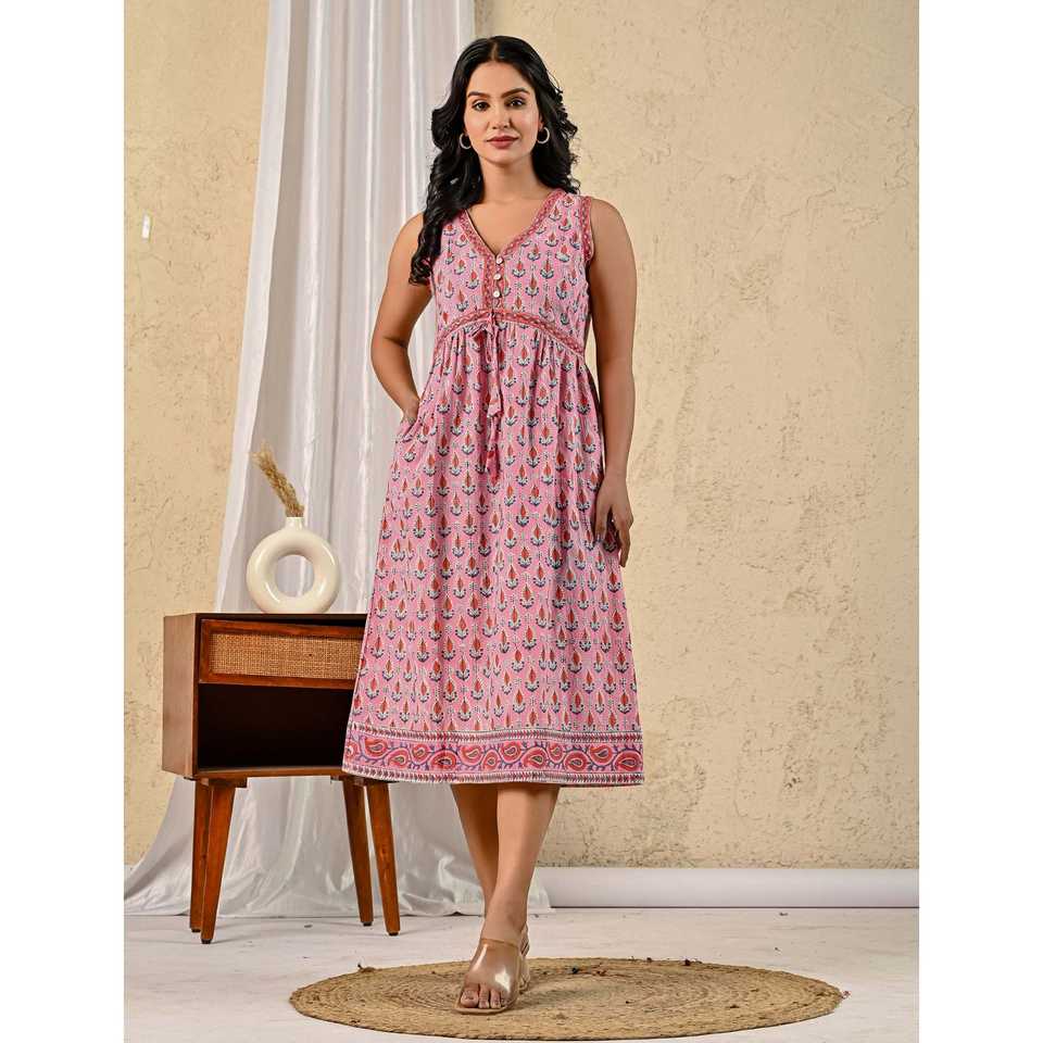 ชุดเดรสผ้าฝ้ายมัลมัลสีชมพู พิมพ์ลายบัตต้า ทรงเอ็มไพร์ เอวสูง ระบายอากาศได้ดี สวยสง่า สวมใส่สบาย เหมาะสำหรับงานปาร์ตี้ ไซส์ XS ฟรีไซส์ สำหรับวันหยุดพักผ่อนและวันที่มีกิจกรรมคลับ
