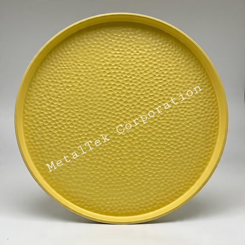 ถาดเหล็กหรูหราพื้นผิวทรงกลมหลากสีถาดของขวัญทันสมัยทำจากโลหะอเนกประสงค์สำหรับตกแต่งบ้านทันสมัย