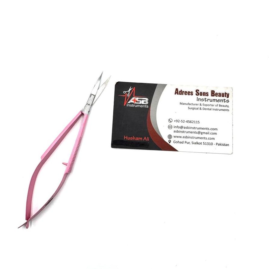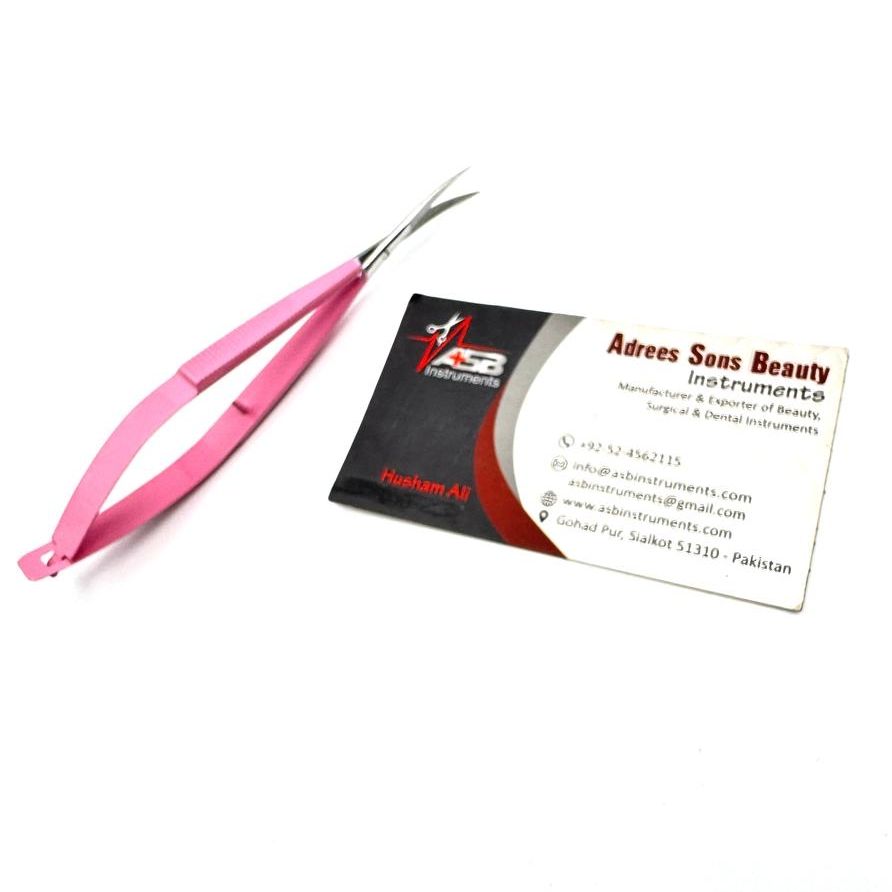 สปริงกรรไกรสเตนเลสสตีลแข็งแบบตรงและโค้งสำหรับขนตาที่ปักคิ้วมาใหม่สีชมพู