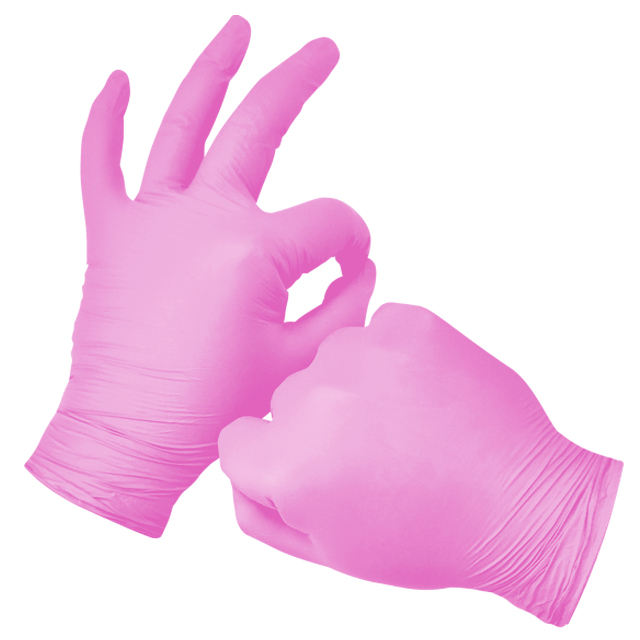ถุงมือตรวจไนไตรล์สีชมพูทางการแพทย์แบบใช้แล้วทิ้งปราศจากผงสำหรับการดูแลสุขภาพ