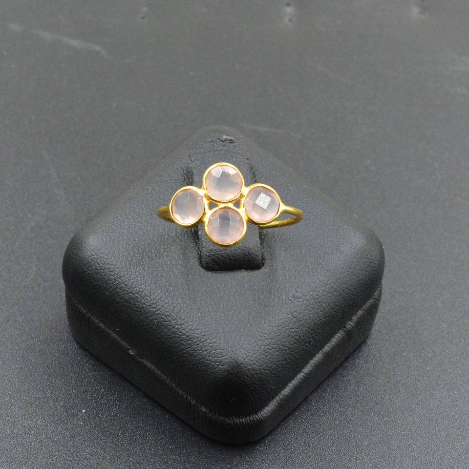 Pink Onyx 5mm Round Gemstone Ring 925 Solid Sterling Silver Trendy Fine Jewelry for Weddings at Wholesale Price