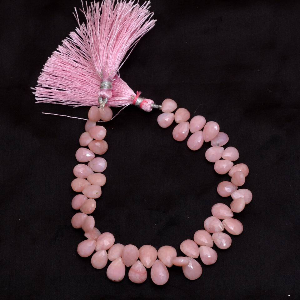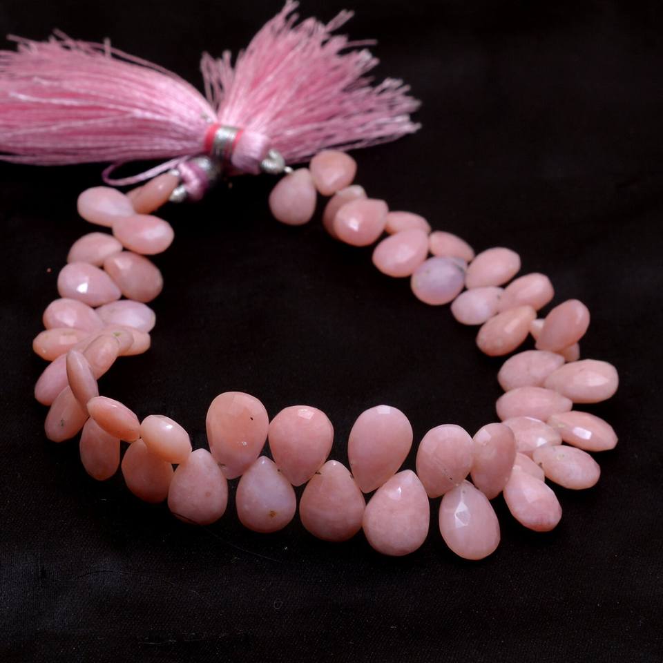 ลูกแพร์พลอยสีชมพูขนาด7x10มม. ลูกปัดเหลี่ยมเพชรพลอยสำหรับทำเครื่องประดับ