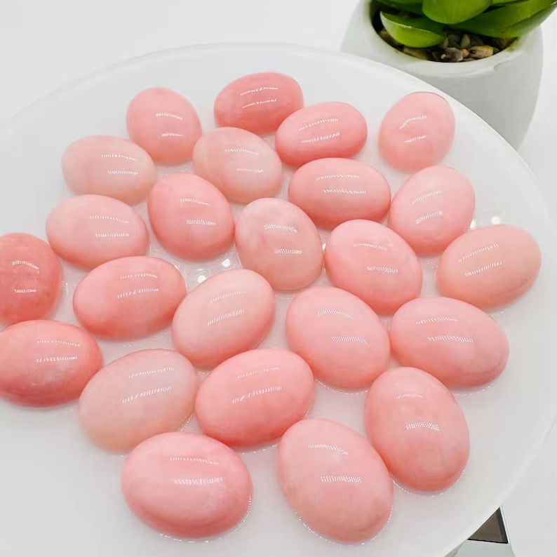 รูปไข่โอปอลสีชมพูวัสดุพลอย
