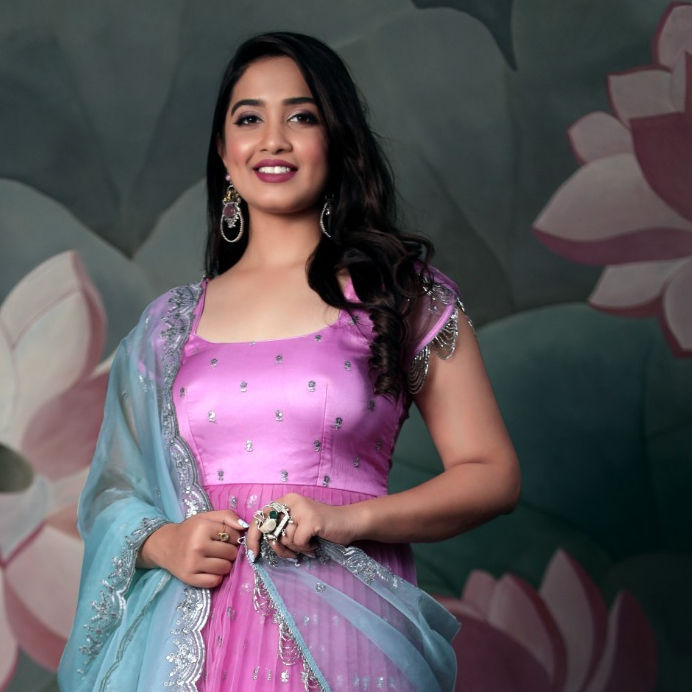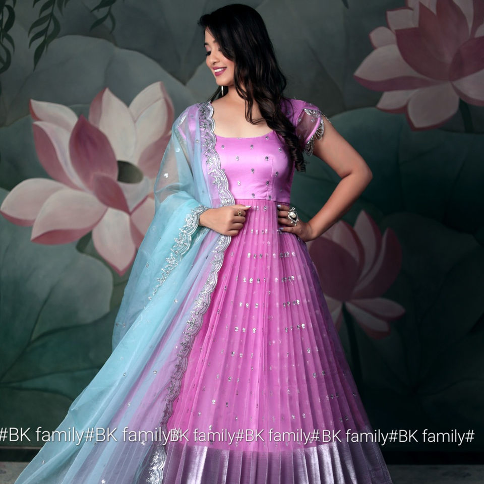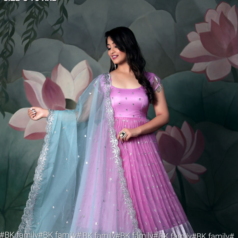 ชุดเดรสออร์แกนซ่าสีชมพูแขนสั้น