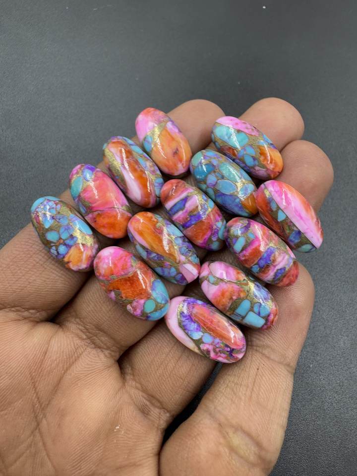 พลอยทองแดงสีชมพูสีเทอร์ควอยซ์ทรงรีเรียบพลอยหลวมคุณภาพสูงสำหรับทำเครื่องประดับ12X24มม. ขายส่งมาก