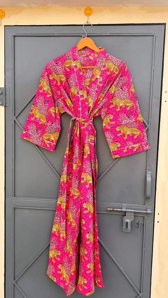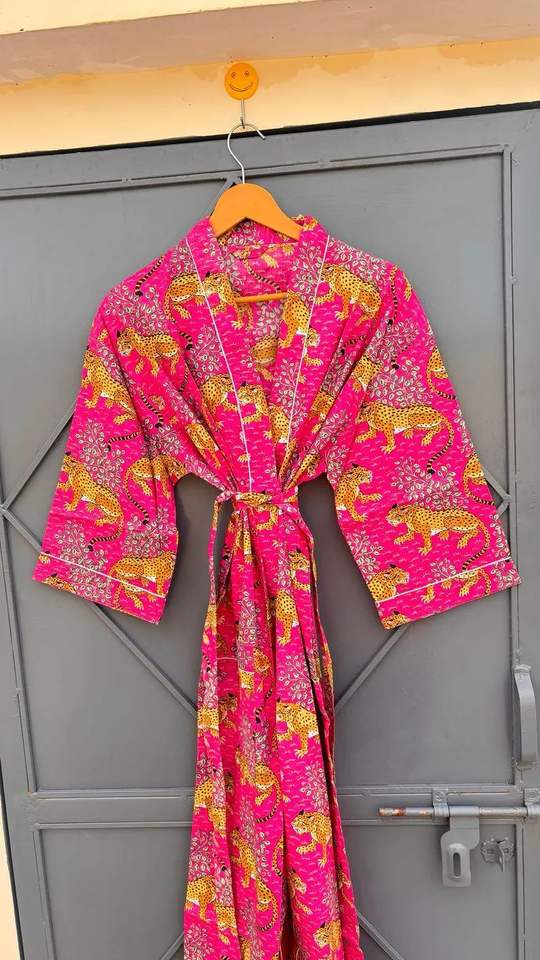 ชุดคลุมกิโมโนผ้าฝ้ายลายเพสลีย์สีชมพู สำหรับคลุมชายหาด