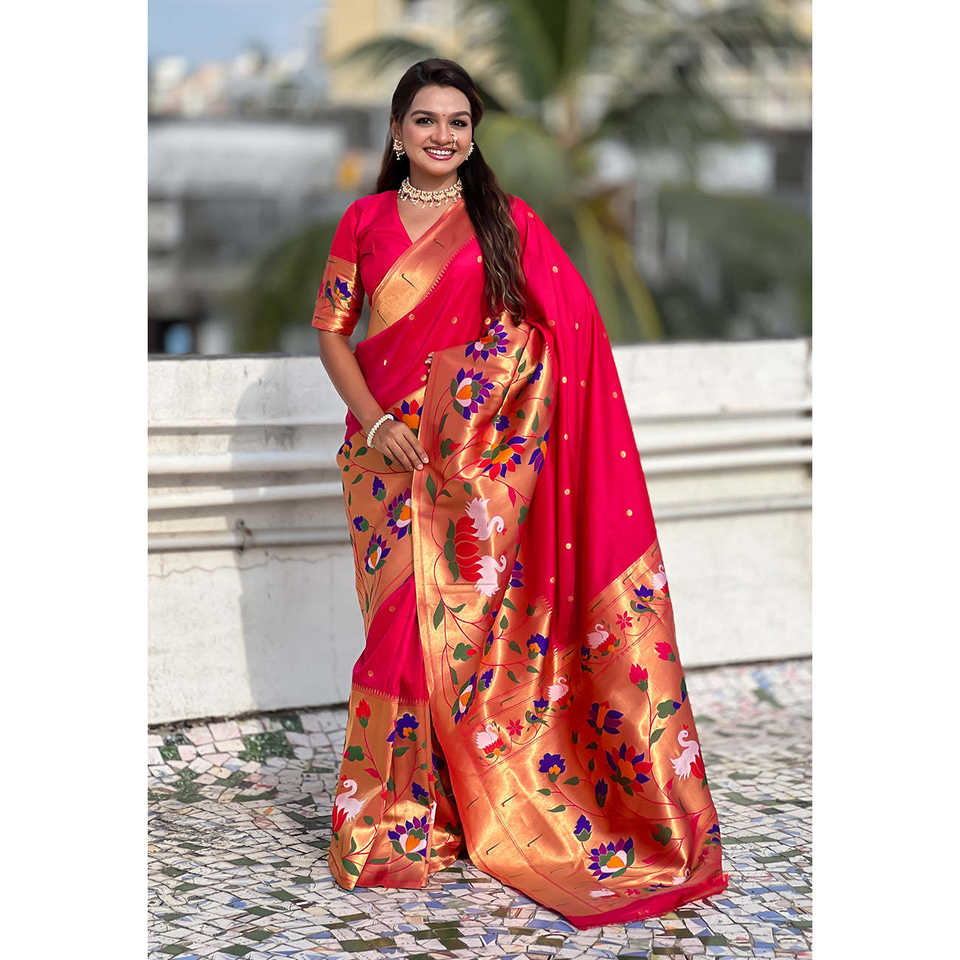 ผ้าไหมส่าหรีสีชมพูกับแนวคิดครึ่งครึ่งใหญ่ผ้าทอแบบดั้งเดิมและผ้าคลุมไหล่จากผ้าทอชั้นยอด