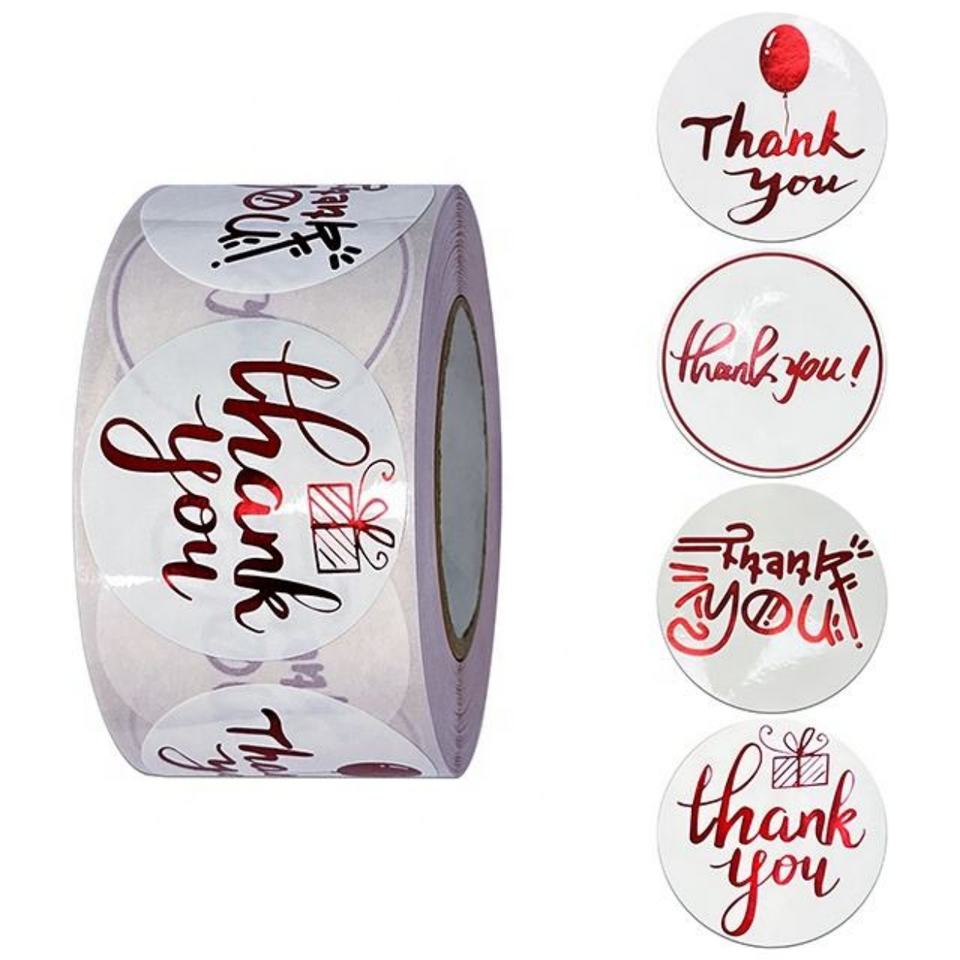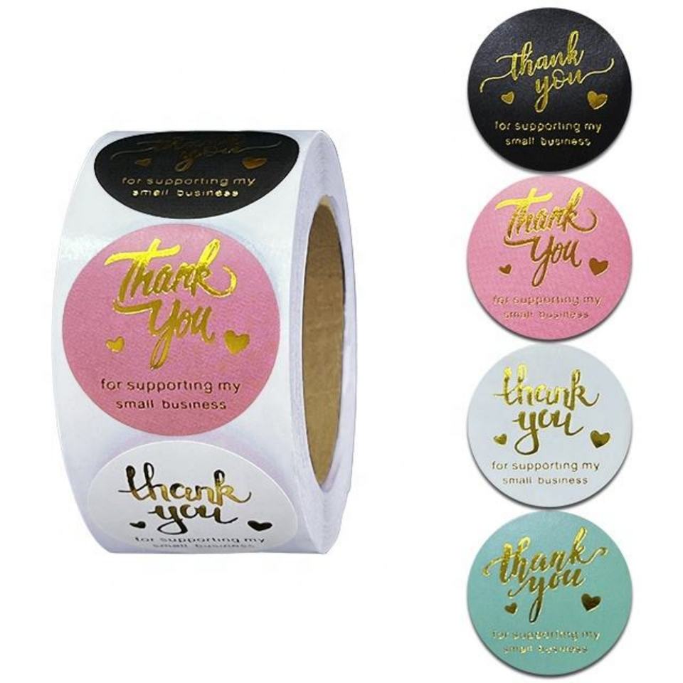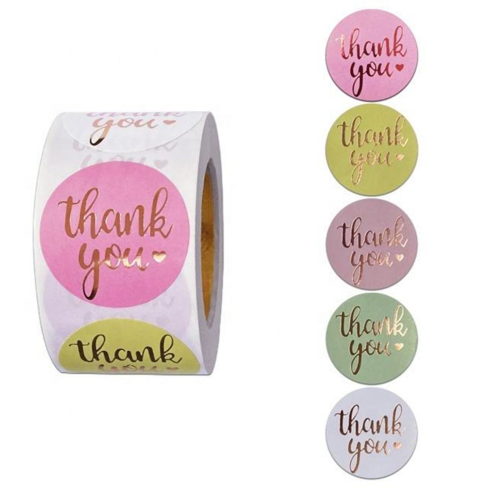 สติกเกอร์กระดาษสีชมพู ป้ายขอบคุณแบบฟอยล์ สำหรับงานแต่งงาน ม้วนละ 1 นิ้ว ซีลปิดซองจดหมาย ทำมือ น่ารัก เครื่องเขียน สติกเกอร์ขอบคุณ