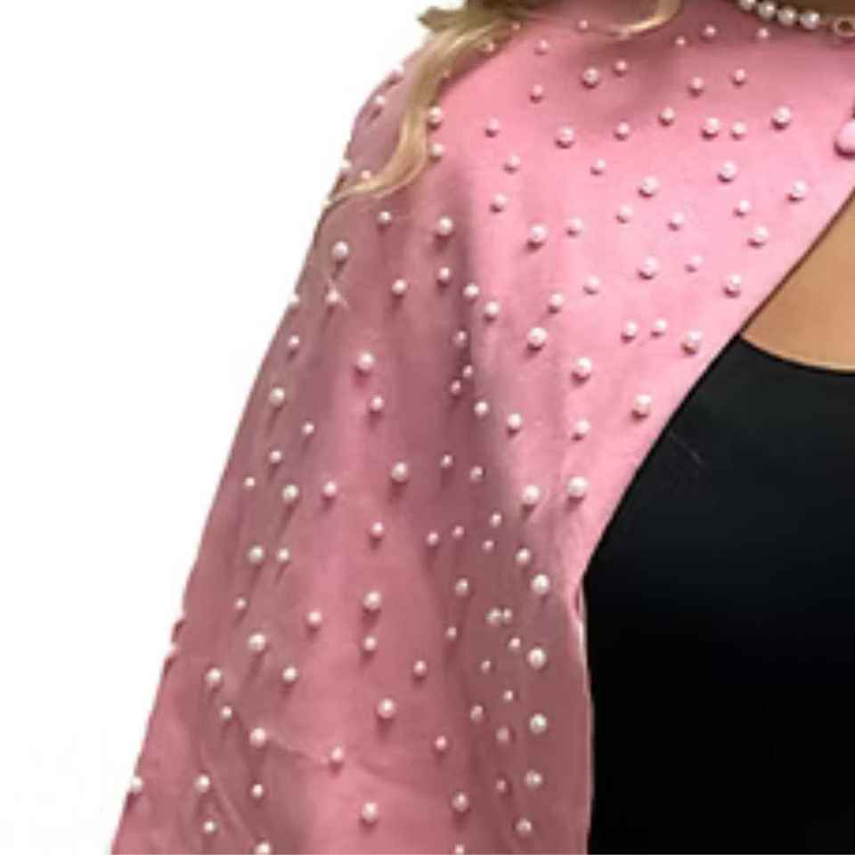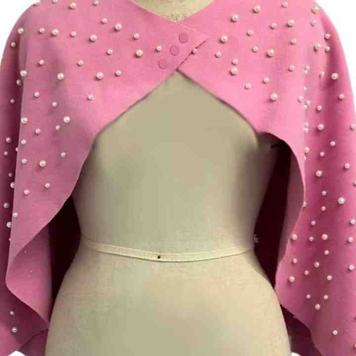 เสื้อคลุมคาร์ดิแกนอะคริลิกสำหรับผู้หญิง สีชมพูประดับมุก แขนยาว ผ้าคลุมไหล่สำหรับงานเลี้ยงตอนเย็น ดีไซน์หรูหรา แฟชั่นสำหรับงานปาร์ตี้