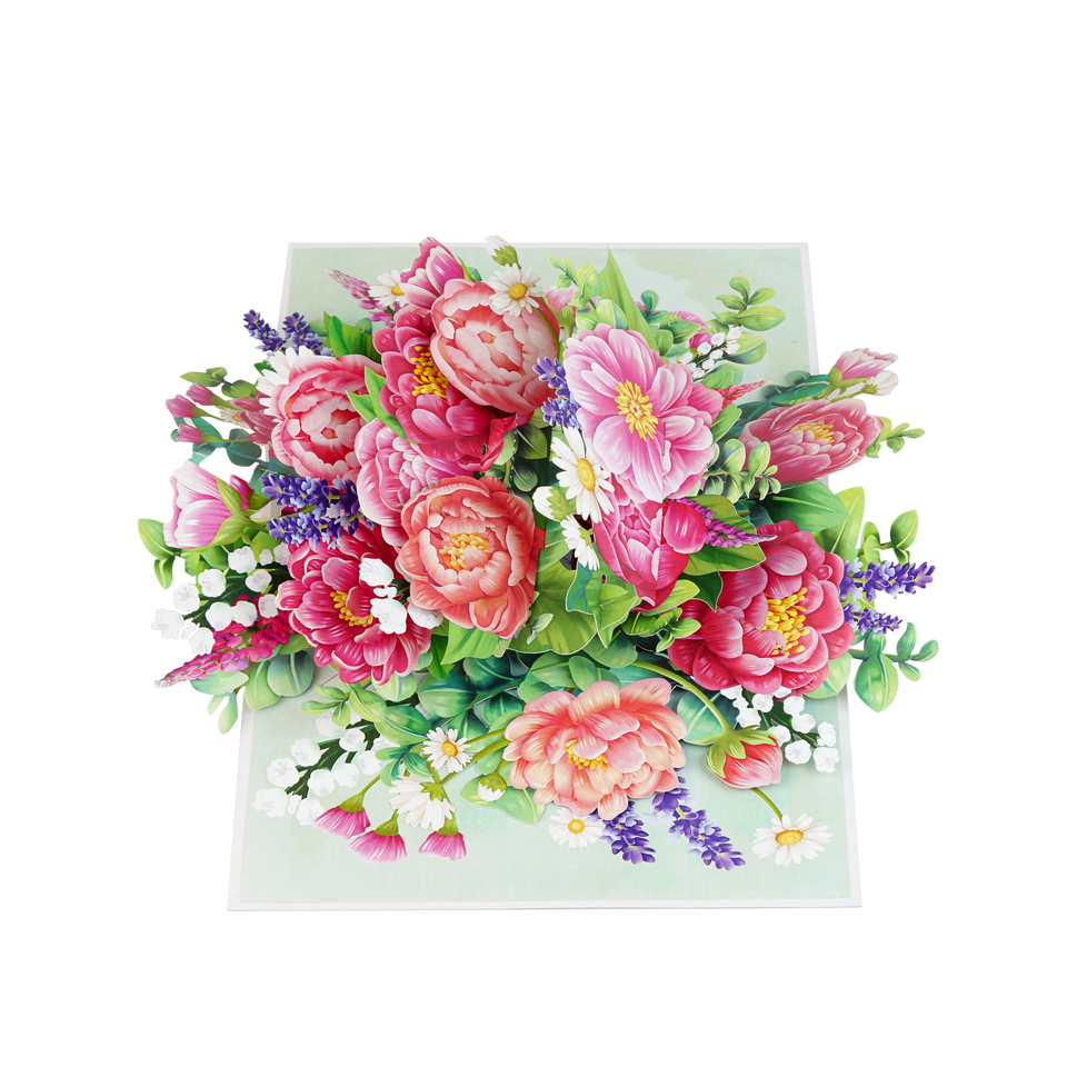 การ์ดอวยพรป๊อปอัพ 3 มิติ ลายดอกโบตั๋นสีชมพู ออกแบบเองได้ ผลิตจากโรงงานโดยตรง