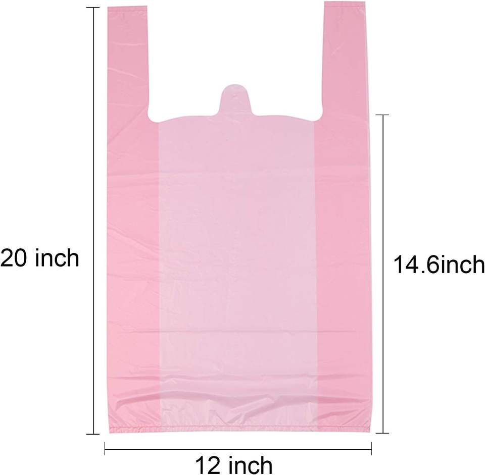 ถุงพลาสติกสีชมพูพร้อมที่จับถุงของชำสำหรับซูเปอร์มาร์เก็ตร้านอาหาร12x20นิ้ว (50ชิ้น)