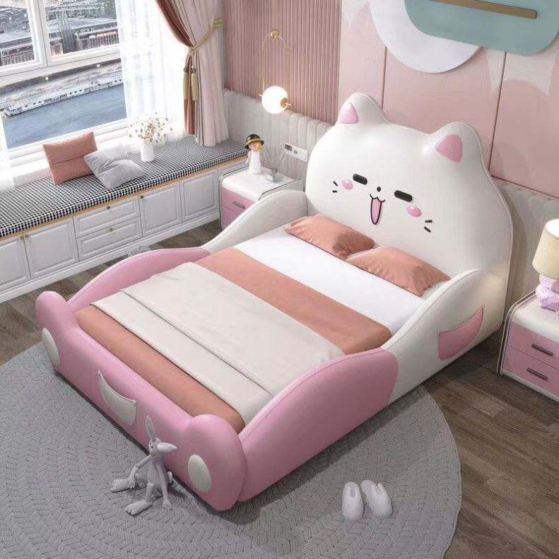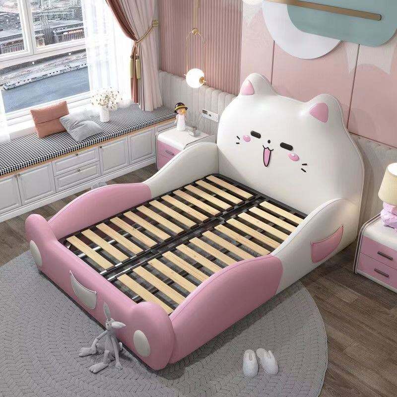 เตียงเด็กผู้หญิงสีชมพูสไตล์โมเดิร์นมินิมอล โครงไม้จริง แข็งแรง ทนทาน พร้อมที่เก็บของแบบซ่อน ดีไซน์หรูหรา ลายการ์ตูน สำหรับห้องนอน